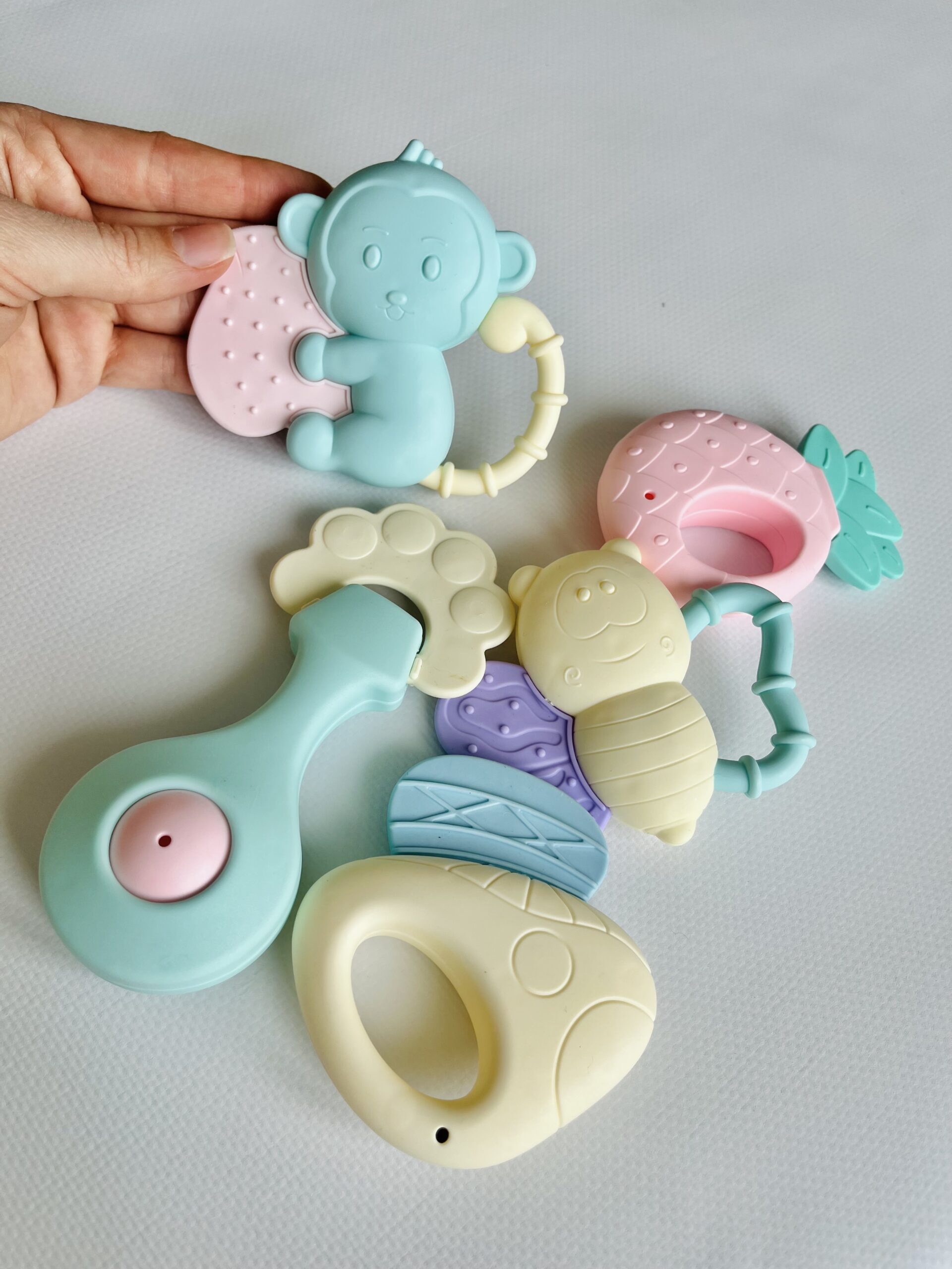 Легкий уход: Игрушки можно мыть и даже кипятить/стерилизовать, чтобы они всегда оставались чистыми.