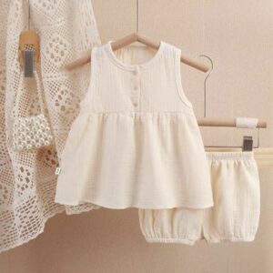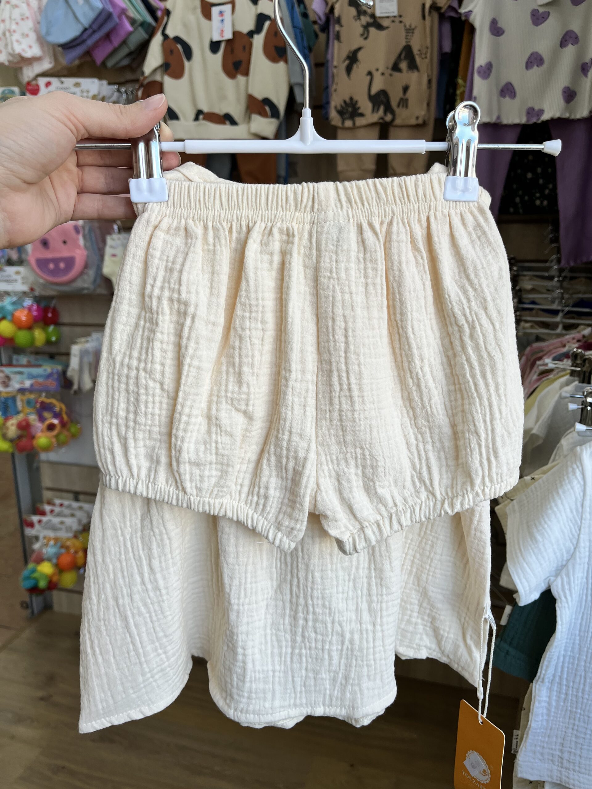 Комплект выполнен из легкого двухслойного муслина, который дарит прохладу даже в самый знойный день.